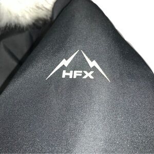 HFX L Puffer Jacket Parka Faux Fur Brim Hood Insulated Black Very Warm