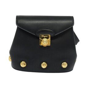 Authentic Salvatore Ferragamo Shoulder Bag Leather Navy Gold