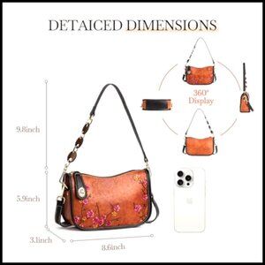 A vintage-inspired genuine leather shoulder bag featuring a beautiful floral embossed pattern. Perfect for adding a touch of classic elegance to any outfit.