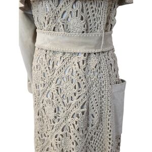 Jonathan Simkhai Yani Combo crochet and suede trench coat With Fringes, Beige M