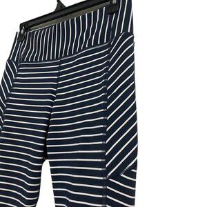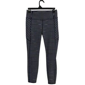 Athleta Navy Blue And White Stripe Zipper Pocket Leggings Size Small