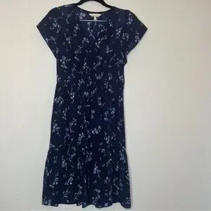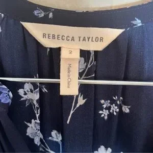 Rebecca Taylor Francine Dress Navy Blue Silk Floral Romantic Summer Whimsical 2