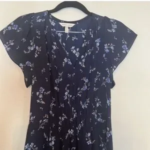 Float into effortless romance with the Rebecca Taylor Francine Dress. Crafted from 100% silk, this navy blue dress features delicate blue and white florals, flutter sleeves, a smocked waist, and a softly tiered skirt. A perfect blend of whimsical charm and dark romantic vibes — ideal for garden parties, weddings, or dreamy everyday wear.