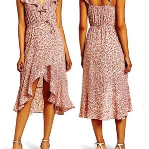 SOCIALITE Pink Floral Print Ruffled Faux Wrap High/Low Midi Dress Women Small