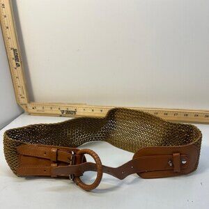 Earthy tones and classic craftsmanship make it perfect for casual outfits, boho looks, or retro inspired styling. Belt shows light wear consistent with normal use and age, adding to its authentic character. Measurements are shown in photos for accurate sizing.