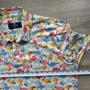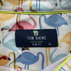 Tom Baine Men's XL Slim Fit Flamingo AOP Performance Collection Gold Polo