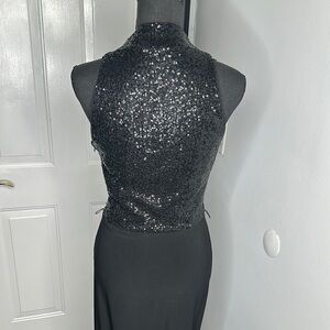 Shine in this elegant black sequin dress, perfect for any special occasion.