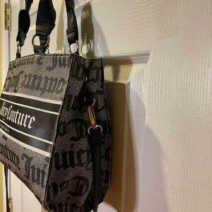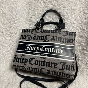 Stylish Juicy Couture handbag in black and gray. Features bold logo design and convenient shoulder strap.