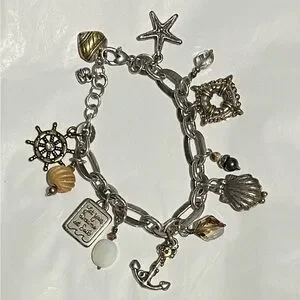 Elegant silver charm bracelet featuring nautical-themed accents. Perfect for adding a touch of the sea to your style.