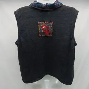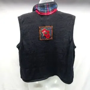 This black sweater vest is perfect for any Christmas party or holiday gathering, and the Grannycore theme adds a touch of nostalgia to the entire ensemble. The sweater vest is available in size M, and the studio's signature knit style is evident in the fabric type. Add this sweater vest to your wardrobe collection today and elevate your holiday wardrobe.