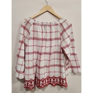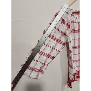 Ali Miles Tunic Blouse Womens Size M White With Red Stripes, 100% Cotton