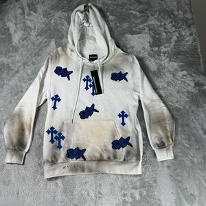 Rockstar Original Sweat Suit Mens S White Hoodie Pants Cross Spray Paint Retro