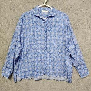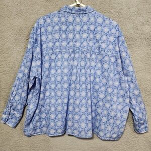 Fedeli Womens Blue Floral Button Up Shirt Size 42 Made in Italy Flowy Lightweight