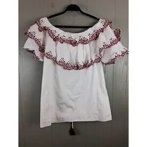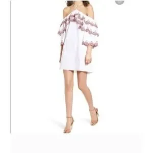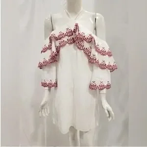 Rebecca Minkoff Dena Heiler Dress Size 4 White Red Off Shoulder Mini Date Night