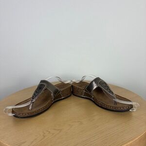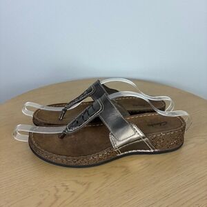 Clarks Metallic Thong Wedge Sandal Women's 9.5 Summer Casual Comfort Walking