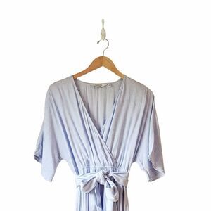 & Other Stories Belted Kimono Wrap Midi Textured Dress Light Blue sz 4