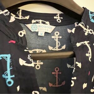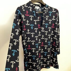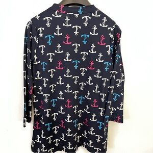 Stylish navy tunic with anchor print. Features pink, blue, and white anchors. Perfect for casual wear around town or at the beach. Excellent condition. Smoke-free home. Fast shipping!