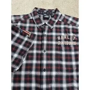 Harley Davidson Motorcycles Genuine Merchandise Plaid Flannel Dress Shirt 2XL