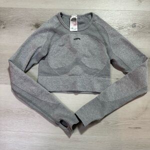 Gymshark Seamless Sports Long Sleeve Crop Top, Heather Gray, Size Small