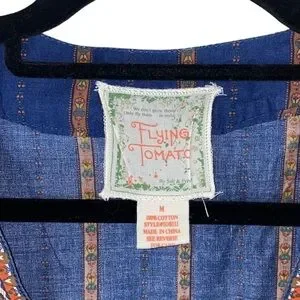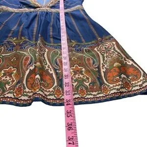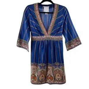 Flying Tomato Navy Blue V-Neck Boho Mixed Print Paisley Floral Mini Dress/Tunic