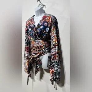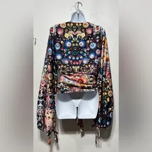 Jovani Beautiful Wrap Around Blouse With Bishop Sleeve Size 6 New With Tags