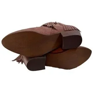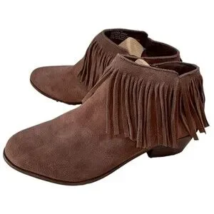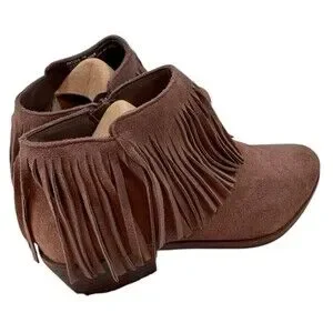 Steve Madden Womens Patzee Boot Size 7 Brown Suede Fringe Bootie Low Block Heel