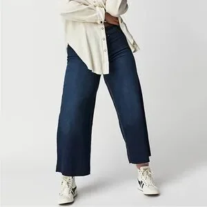 NEW Free People We the Free Crvy Counter Culture Button Fly Wide Leg Crop Jeans