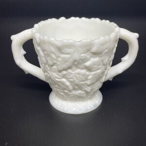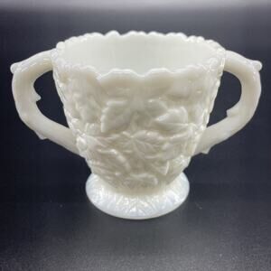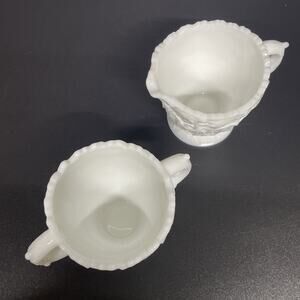 Vtg Westmoreland Milk Glass Sugar & Creamer Set Bramble Maple Leaf Pattern MCM