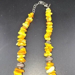 Baltic Amber Nugget Necklace Sterling Silver Beads And Heart Clasp