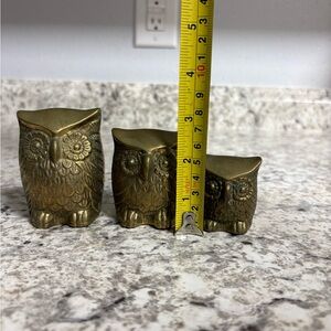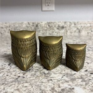 Vintage Set Of 3 Solid Brass Owls Leonard Silver Mfg Co Mid Century