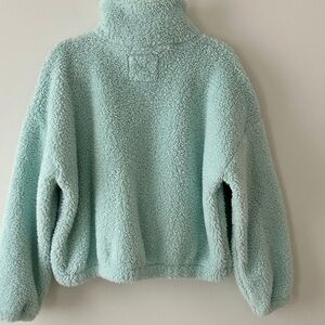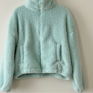 Stay warm with this cozy mint green fleece jacket. Perfect for chilly days.