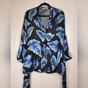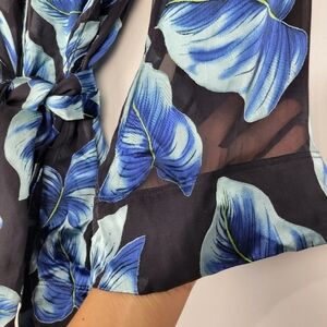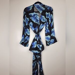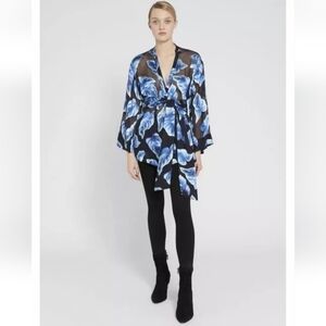 Gorgeous blue floral with black sheer silk blend floral kimono top!