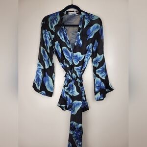 Alice + Olivia Rosario Tie Waist Blue Kimono Silk Blend Top Size Small