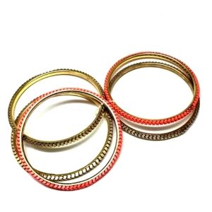 Women's Set of 5 Gold & Salmon Coral Pink Colors Bangle Bracelets Jewelry