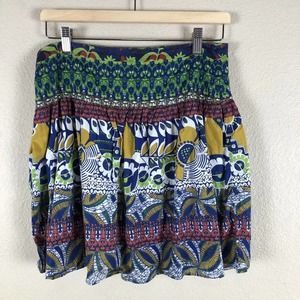 Angie Skirt Blue Geo Print Mini Boho Colorful Casual Vacation Womens Large