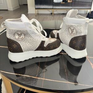 Louis Vuitton Women's White and Brown Patterned Sneakers