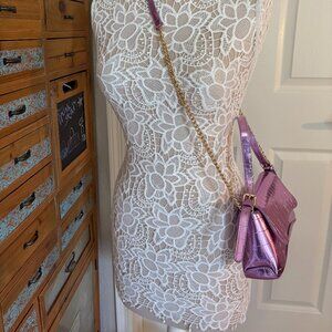Metallic Mirror Crocodile Embossed Handbag / Crossbody Bag - Lilac Purple- NWT