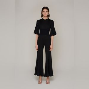 AMYLYNN The Bae Wide Leg Fitted Knit Jumpsuit in Black