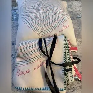 Aqua x Kerri Rosenthal Love Rules Embroidered Throw Blanket Exclusive - White and Throw Pillow. New in package. This was a limited edition for Breast Cancer.