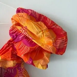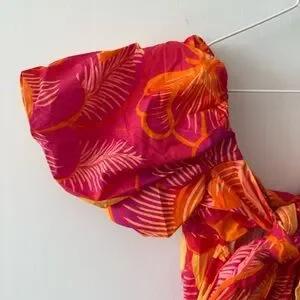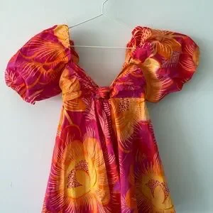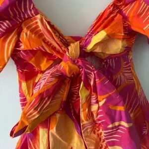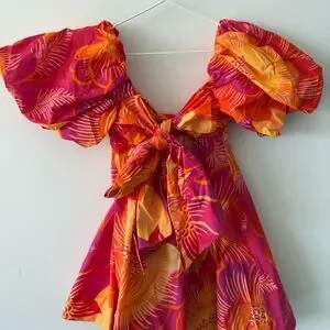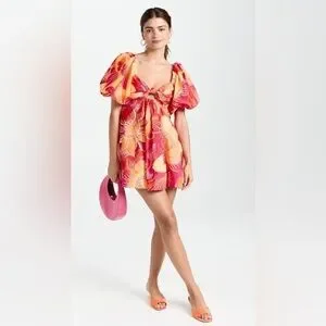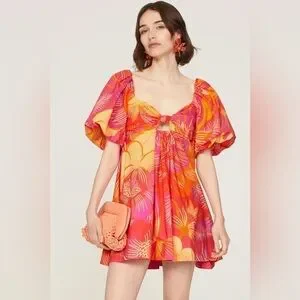 Vivid tropical style is on offer with this FARM Rio mini dress, which stands out with a sunset-hued floral print. Voluminous proportions keep the fit comfortable and the feel of the piece romantic.