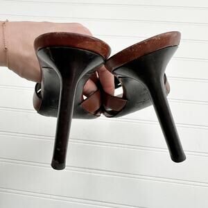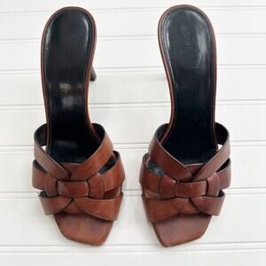 Saint Laurent Tribute Brown Leather Mule Sandals Slide Heels Size 36 EU Luxury