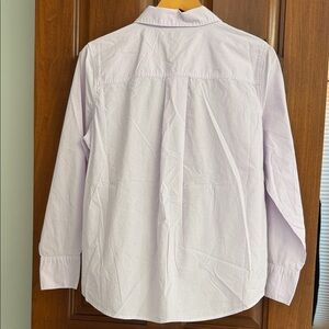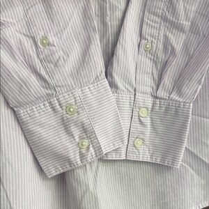 Elegant lavender striped shirt with button-up design. Ideal for versatile styling.