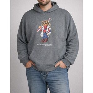 *Flawed Polo Ralph Lauren Ski Bear Graphic Hoodie Gray Fleece 2XB Big Mens 2X