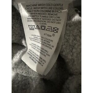 Used: Flawed: Noticeable staining/discoloration on front as shown in photos (areas pointed out). Missing Drawstring for hoodie. Interior fabric loop/strap hanging loose between the front pocket sections (visible from inside). Light overall pilling consistent with regular wear.