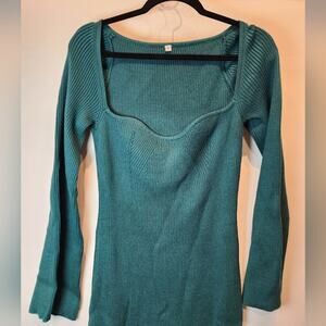 New Teal Green Bodycon Knit Sweater Dress Stretch Bell Sleeves Size XL