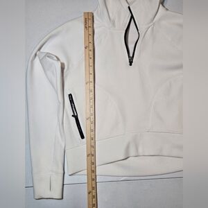 Chic white hoodie with stylish black zippers. Ideal for casual wear.
