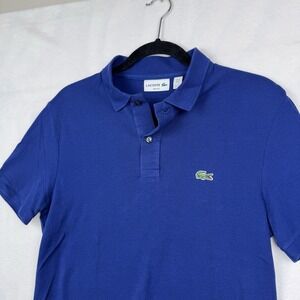 Lacoste Men's Classic Pique Slim Fit Short Sleeve Polo Shirt- Steamship Blue S