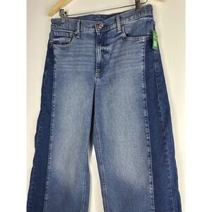 NWT GAP High Rise Stride Wide Leg Jeans 30 10R Colorblock Blue Denim Raw Hem