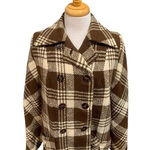Vntg 50’s Gus Mayer Volup Brown Plaid Double-Breasted Pea Coat sz XL