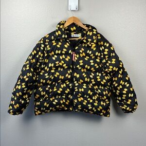 Rachel Antonoff Women's Parker Bow Tie Pasta Puffer Coat Black/Yellow Jacket Anthropologie L